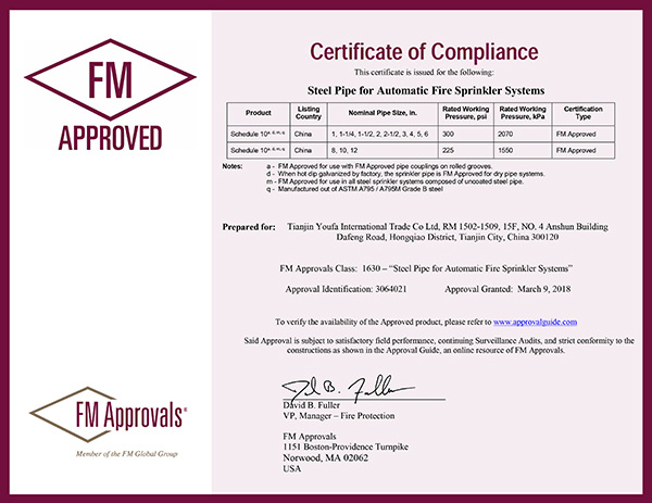 Fm Certificates For Fire Sprinkler Pipe 1-2